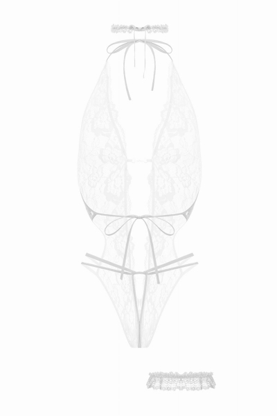 Ensemble Body Blanc Ouvert en dentelle fine et extensible