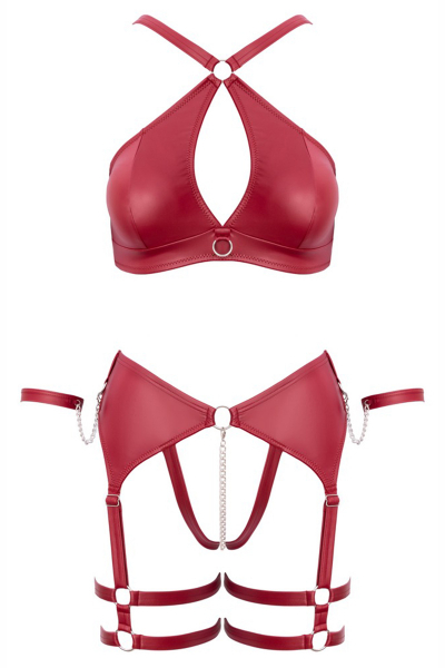 Ensemble soutien-gorge souple et string ouvert à jarretelles