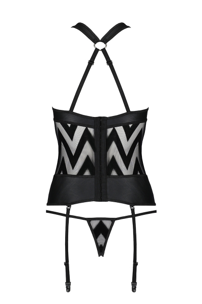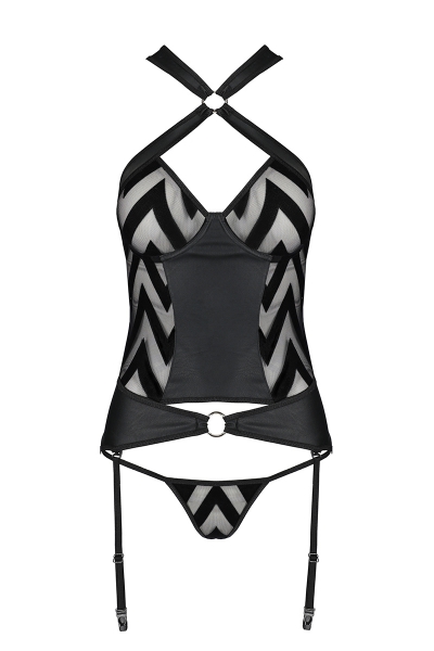 Guêpière structurée en tulle avec motifs chevrons et détails façon cuir mat pour un effet irrésistible