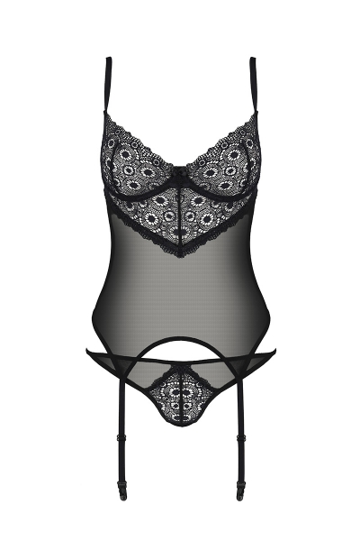 Ensemble de lingerie sexy deux pièces : guêpière avec jarretelles et string assorti